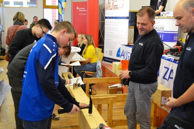 Am 15.11.2023 stellten im Rahmen der 15. Berufsmesse 20 Unternehmen und Einrichtungen in der Zeit von 9:45 bis 13:00 Uhr den ca. 120 Schülerinnen und Schülern der Klassen 8, 9 und 10 an ihren Ständen die verschiedenen Möglichkeiten einer beruflichen oder schulischen Ausbildung vor. In diesem Jahr nahmen fünf Aussteller erstmalig an unserer Messe teil.